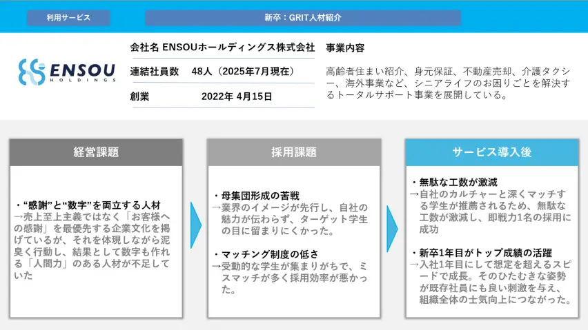 入社1年目で「組織トップの成績」を叩き出す人材を採用 —ENSOUホールディングスが実現したGRIT人材紹介の全貌
