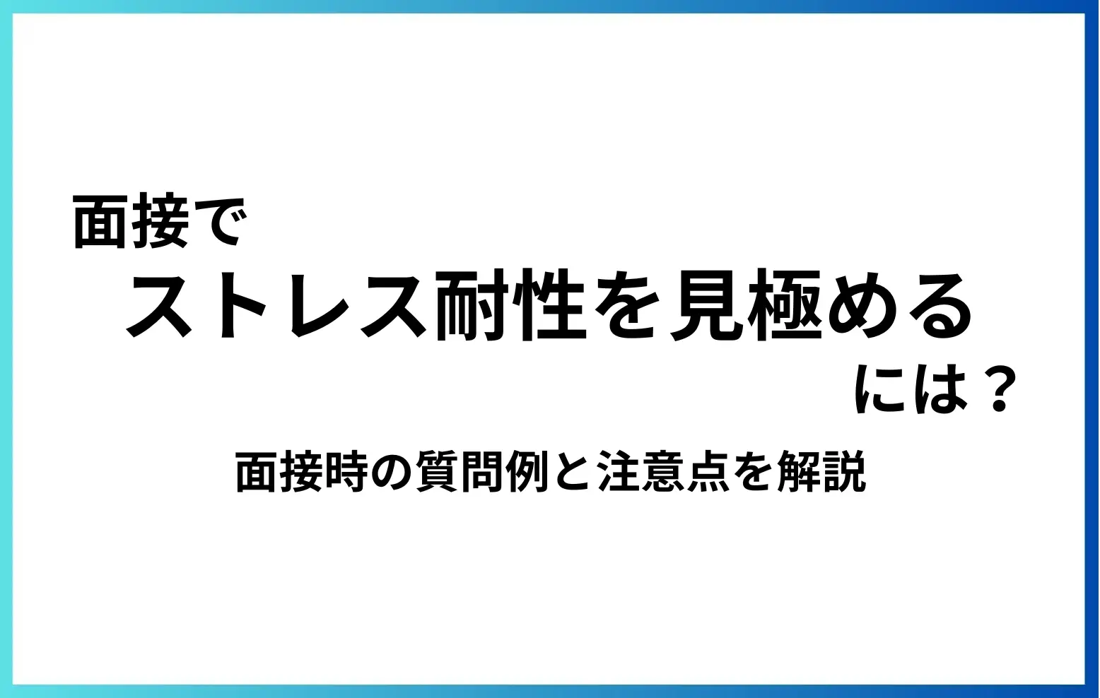 面接でストレス耐性を見極めることは、候補者と企業の負担を減らし、長く活躍してくれる人材を採用・育成するために欠かせません。