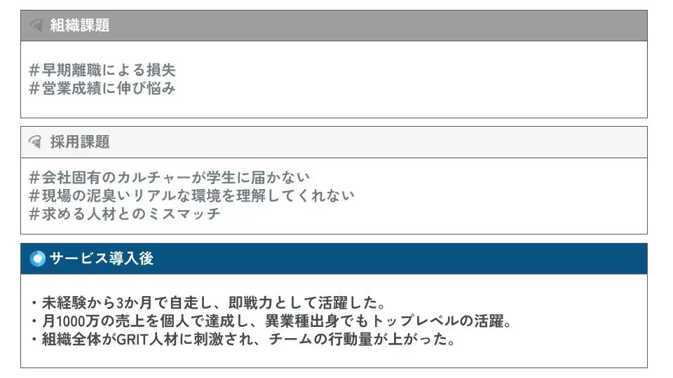 そこで、現状を打破するために選んだのは、Maenomeryが提唱する「GRIT人材(やり抜く力を持つ人材)」です。